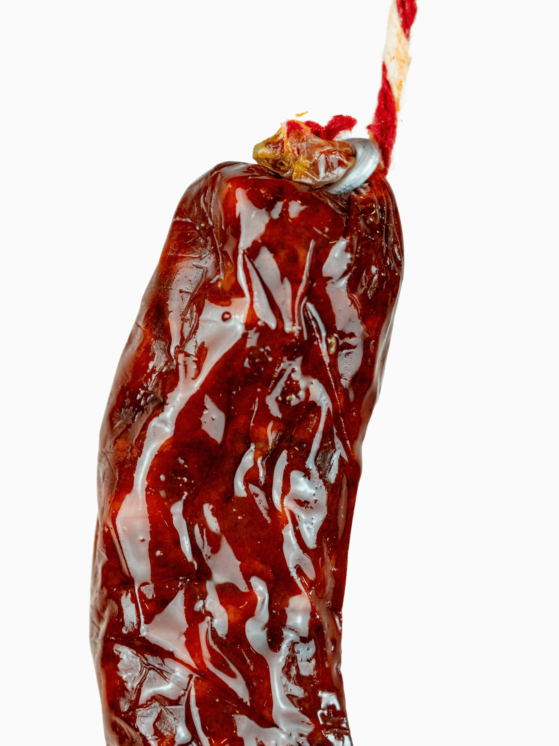 Su formato en herradura, además de ser visualmente reconocible, permite una curación uniforme y más concentrada, lo que resulta en una textura firme, jugosa y un equilibrio perfecto entre grasa infiltrada, especias y aroma.