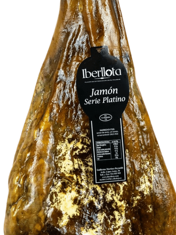 El Jamón Ibérico Serie Platino de Iberllota es la joya de nuestra casa, un producto excepcional con Denominación de Origen Protegida Dehesa de Extremadura y brida roja, procedente de cerdos de 50% o 75% raza ibérica. Criados en libertad en las extensas dehesas extremeñas, estos animales se alimentan de bellotas, hierbas y recursos naturales durante la montanera, lo que garantiza una infiltración de grasa única y un sabor profundo, elegante y persistente.